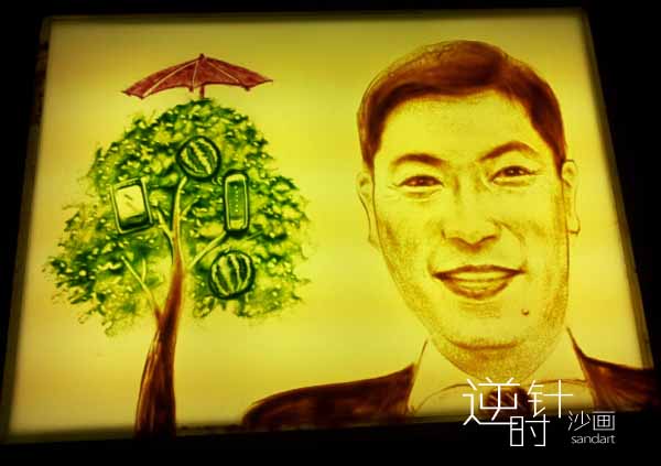 2015 华为终端年会运用沙画来诠释领导和员工们的目标:“奋斗铸成功,百亿再冲锋!”