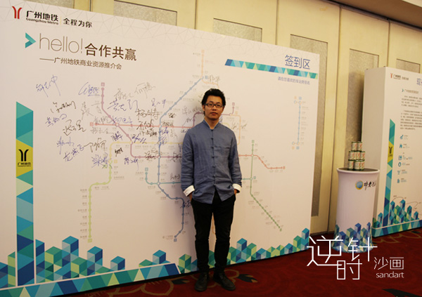 在沙画艺术家肖思鑫手中 用沙画形式让大家了解地铁商业资源