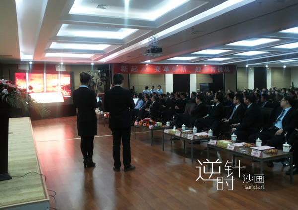 2014年沙画艺术家应邀参加中联重科年会总结沙画演出,中联重科股份有限公司创立于1992年,主要从事建筑工程、能源工程、环境工程、交通工程等基础设施建设所需重大高新技术装备的研发制造,是一家持续创新的全球化企业。中联重科成立21年来,年均复合增长率超50%,为全球增长最为迅速的工程机械企业。公司生产具有完全自主知识产权的13大类别、86个产品系列,近800多个品种的主导产品,为全球产品链最齐备的工程机械企业。公司的两大业务板块混凝土机械和起重机械均位居全球前两位。