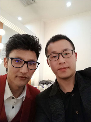 盐画肖思鑫和著名民族歌手来国庆