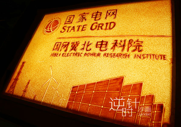 沙画《国家电网》企业发展历程,我在电科院等你来。 有一种诚信让我们洗礼修养的力量 有一种责任让我们感悟担当的臂膀 有一种创新让我们专注绿色能源的光芒 有一种奉献让我们扛起明天更好的电网